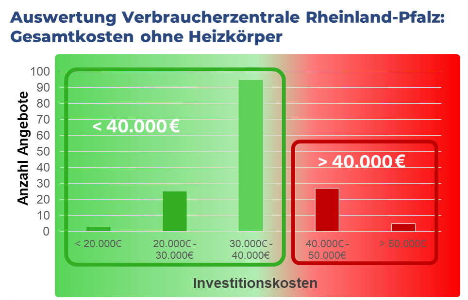 Bei den Angebotsvergleichen wurden von den Fachleuten der Verbraucherzentrale Preisunter-schiede von bis zu 20.000€ für vergleichbare Leistungen beim Heizungstausch mit Wärmepumpe gefunden.